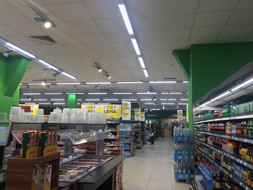 У нас продаются продукты питания и различные домашние мелочи, среди которых, помимо прочего, некоторая косметика и средства гигиены. Интуитивно понятная выкладка товаров и организация торговой площади, а также грамотная организация работы касс - залог того, что время, которое вы посвятите шоппингу, будет не только эффективным, но и приятным.