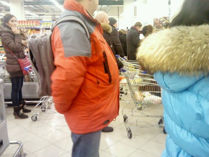 Случилось все в соседней очереди, дама оплачивала покупку и запищали индикаторы ( кстати, они ломаются уже не первый раз, в этот понедельник в нашей очереди он неустанно на любое движение реагировали.)